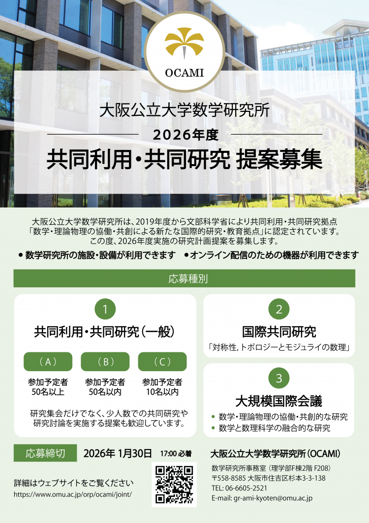 Open Call for FY2026 OCAMI Researchers (Deadline: December 22, 2025)