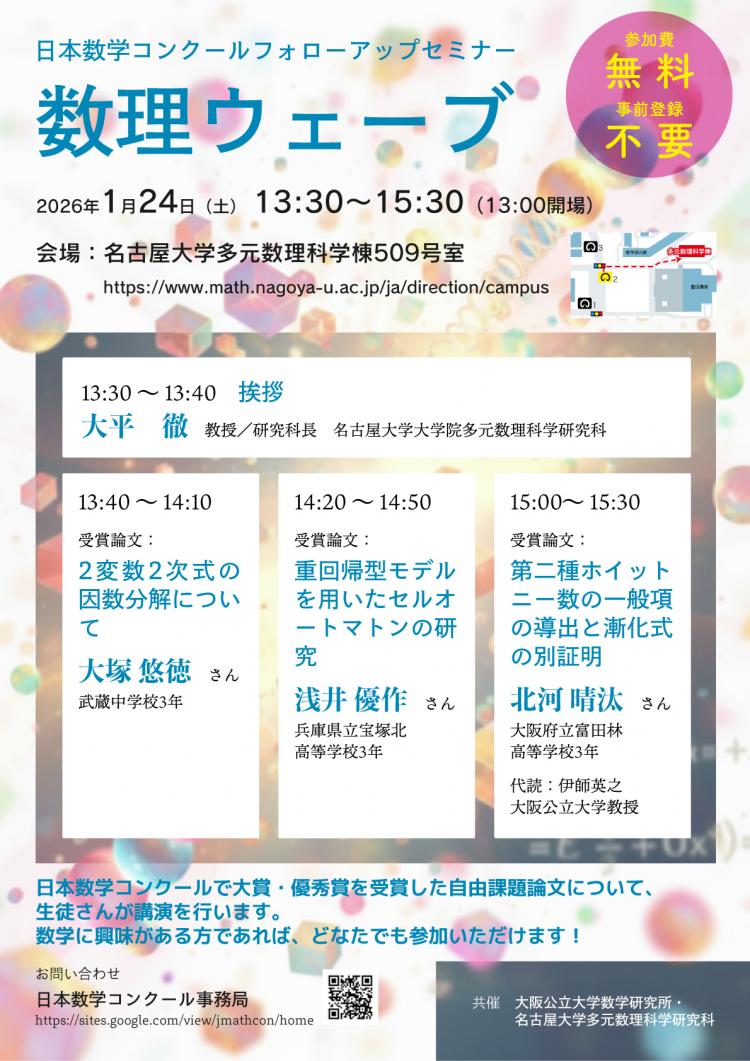 日本数学コンクールフォローアップセミナー「数理ウェーブ」2026年1月24日(土)開催