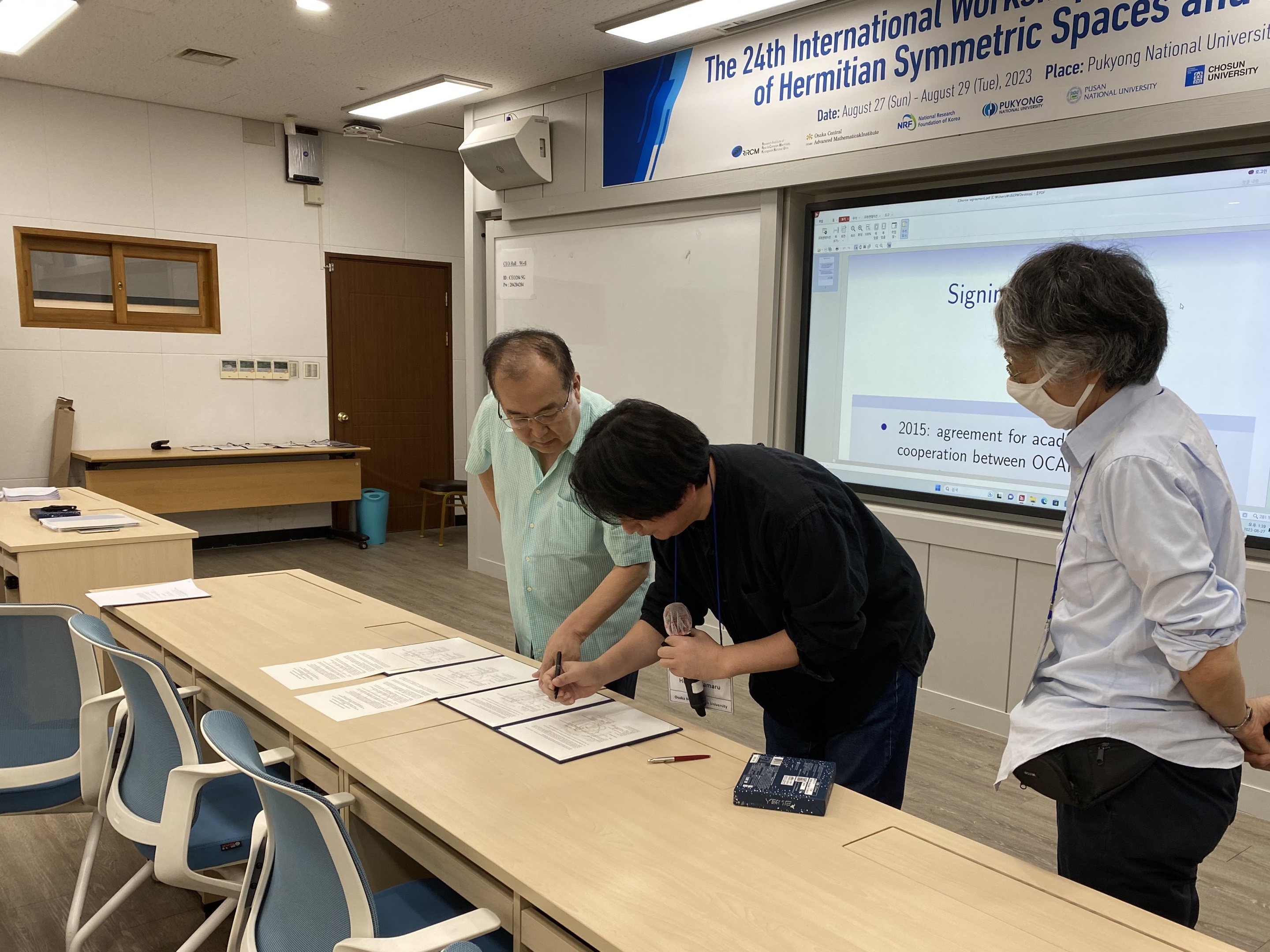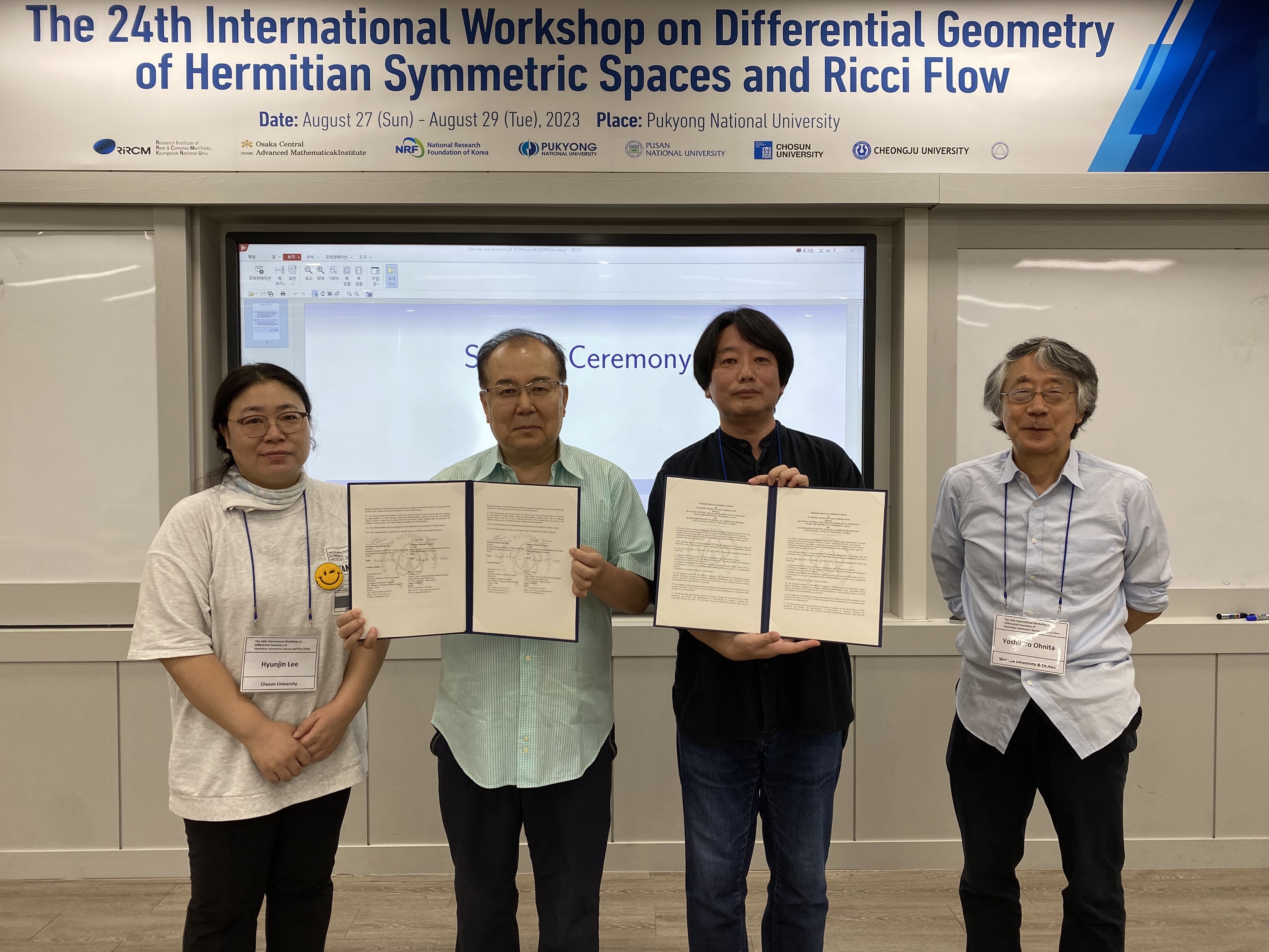 2023年8月27日(日)~29日(火)、大阪公立大学数学研究所 (OCAMI) と韓国 RIRCM が共催する研究集会「The 24th International Workshop on Differential Geometry of Hermitian Symmetric Spaces and Ricci Flow」が釜慶大学校 (Pukyong National University、韓国)において開催されました。