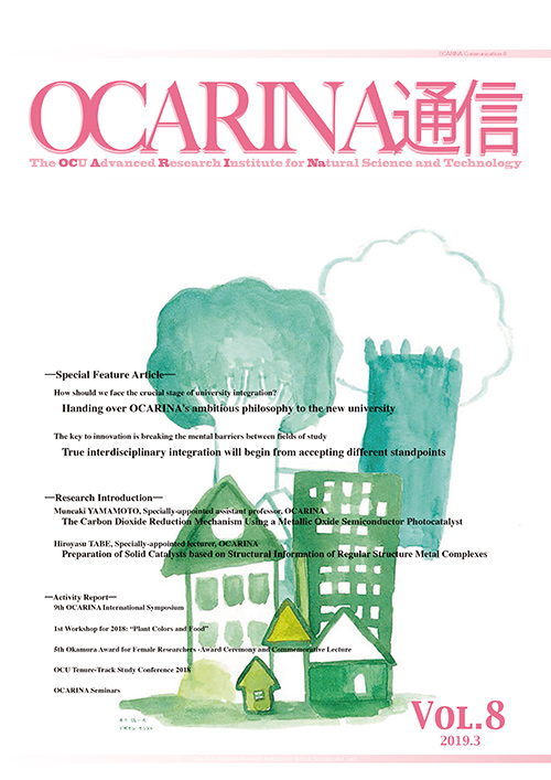 OCARINA通信 バックナンバー (PDF) Vol.9 (日本語版 / 830KB) Vol.9 (English ver. / 3.8MB) Vol.8 (日本語版 / 1.5MB) Vol.8 (English ver. / 1.2MB) Vol.7 (日本語版 / 1.7MB) Vol.7 (English ver. / 1.5MB) Vol.6 (日本語版 / 5.1MB) Vol.6 (English ver. / 3.5MB) Vol.5 (日本語版 / 3.4MB) Vol.5 (English ver. / 1.51MB) Vol.4 (日本語版 / 6.1MB) Vol.4 (English ver. / 1.1MB) Vol.3(日本語版 / 6.3MB) Vol.3 (English ver. / 1.5MB) Vol.2 (日本語版 / 7.8MB) Vol.2 (English ver. / 5.8MB) Vol.1(日本語版 / 8.3MB) Vol.1 (English ver. / 1.8MB) シンポジウムのプログラムなど (PDF) 大阪市立大学複合先端研究機構設立記念シンポジウム / 2008.Mar.10 (5.8MB) 太陽光エネルギーの有効利用に関するワークショップ / 2008.Dec.15 (5.5MB) International Workshop on Spectroscopic Studies of Carotenoids, Chlorophylls and Bacterial Photosynthesis / 2010.Jan.25 (6.5MB) 持続可能社会の実現に向けた次世代型エネルギー 開発の現状と将来展望」に関するワークショップ / 2009.Feb.23 (10.8MB) 2010 OCU International Symposium on the Foundaton of Environmental Research / 2010.Mar.8-9 (6.1MB) 大阪市立大学複合先端研究機構 2号館開所記念講演会 / 2010.Nov.18 (3.3MB) The 2010 International OCARINA Symposium / 2010.Dec.08 (1.1MB) The 2010-3rd International Conference of OCARINA -KAKUNO MEMORIAL- / 2011.Mar.7-9 (1MB) The 2010 International Conference of OCARINA / 2011.Nov.21 (4MB) The 2011 International Conference of OCARINA / 2012.Mar.5-6 (2.2MB) The 2012 International Conference of OCARINA / 2013.Mar.4-6 (8.2MB) The 2013 International Conference of OCARINA / 2014.Mar.4-5 (3.7MB) The 2014 International Conference of OCARINA / 2015.Mar.4-5 (7MB) 7th OCARINA International Symposium in conjunction with Symposium in honor of Distinguished Professor Michael Nobel / 2016.Mar.17-18 (in preparation) 8th International Conference of OCARINA / 2017.Mar.7-8 (32MB) 9th International Conference of OCARINA / 2018.Mar.6-7 (8.3MB) 10th International Conference of OCARINA / 2019.Mar.5-6 (31MB)