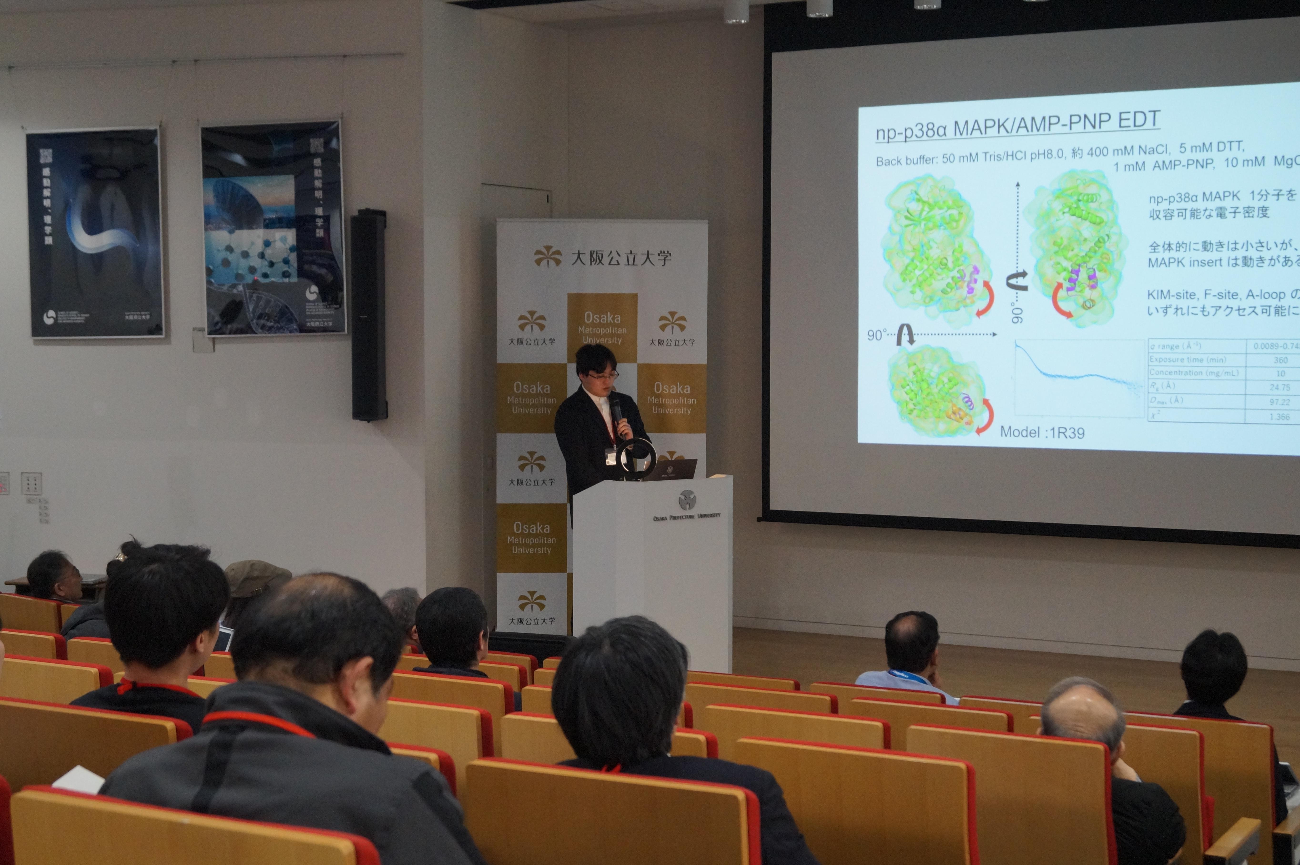 シンポジウムでは、一般財団法人総合科学研究機構・横浜市立大学名誉教授の佐藤 衛氏による講演の後、本学と株式会社リガクの研究者から、協働研究を進めている新技術である溶液電子密度トポグラフィー解析(EDT)およびEDTシステムについての基礎的知識、応用事例、装置利用方法について体系的に紹介しました。