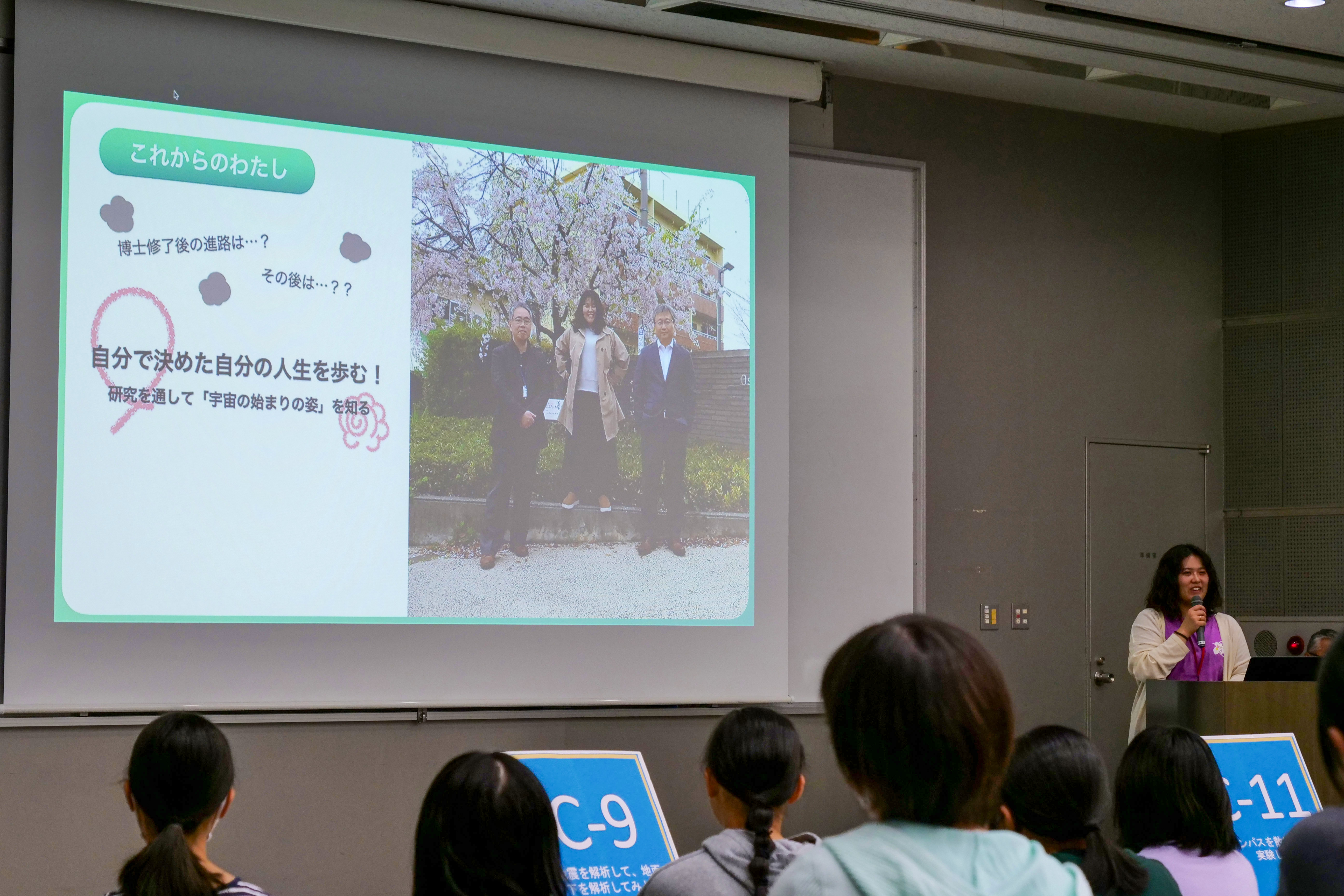 学内の連携事業(※)として「女子中高生のための関西科学塾」C日程で、社会人経験を持ち、博士後期課程へ進学したIRISが自身の経験を基に、理系進学を決めた経緯や想いについて講演を行いました。※連携事業とは……IRISメンバーは、大阪公立大学が実施している、他のサイエンス・コミュニケーション関連事業にも、主にティーチングアシスタント(TA)として参加しています。