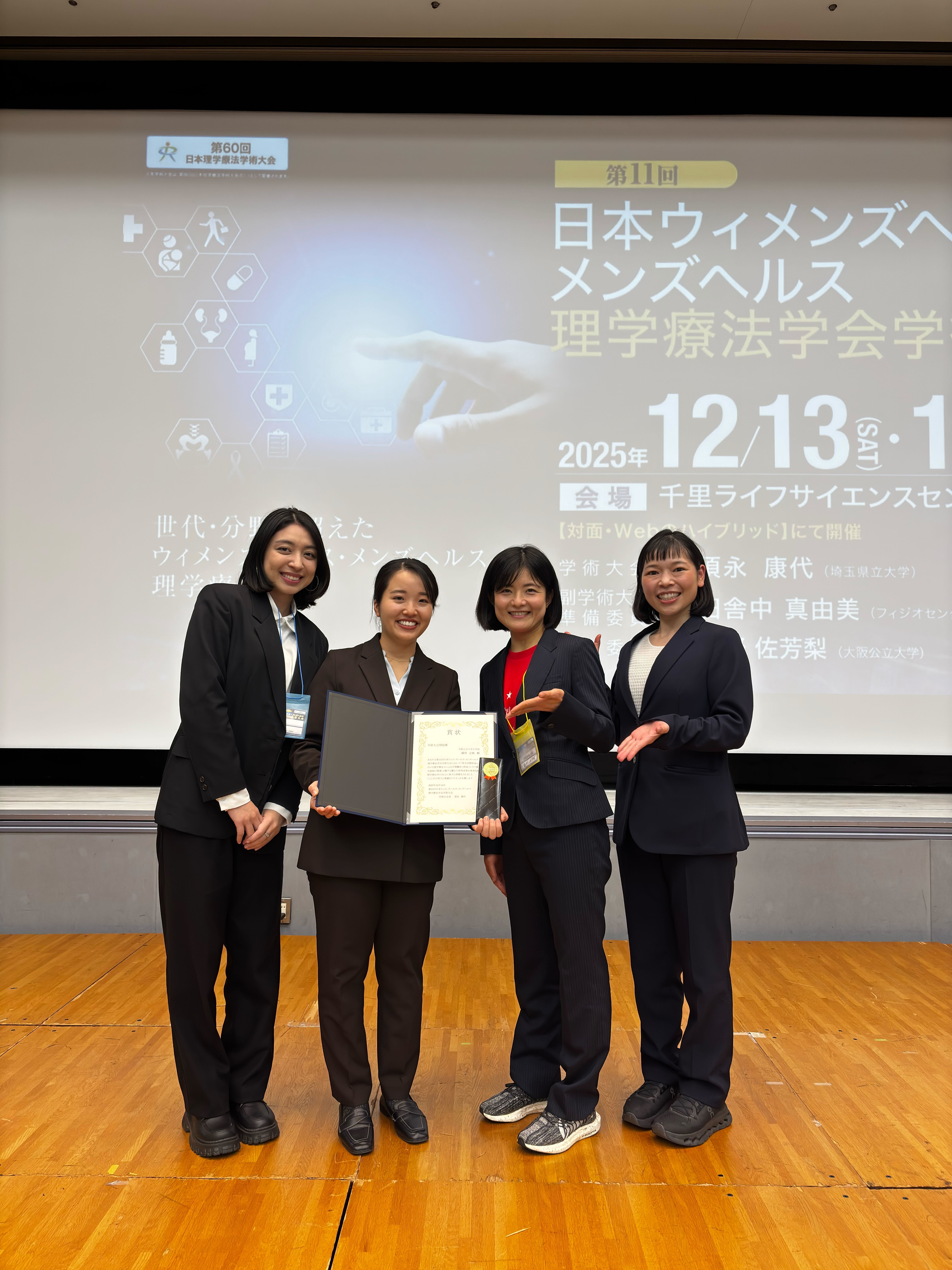 2025年12月13日・14日に大阪・千里ライフサイエンスセンターで開催された「第11回日本ウィメンズヘルス・メンズヘルス理学療法学会学術大会」において、本研究科・森野研究室所属の藤原志帆さんが「学術大会奨励賞」を受賞しました。おめでとうございます!