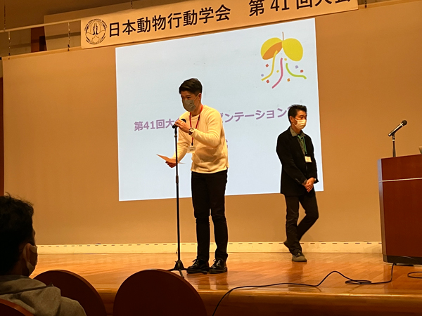 岩田祐典(M2)、北口あやの(M2)、十川俊平(特任研究員)の3名が日本動物行動学会 第41回大会にてプレゼンテーション賞を受賞