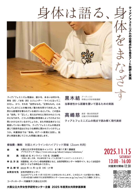 2025年度男女共同参画事業「身体は語る、身体をまなざすークィア/フェミニズムの交差点から見るアート批評と実践ー」