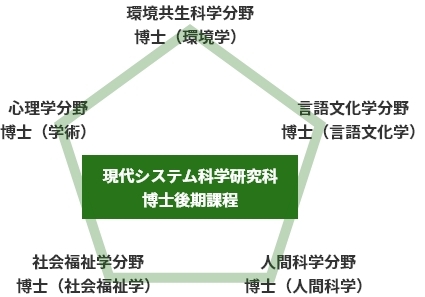 現代システム科学研究科の各分野では、それぞれの学位に応じた専門的なカリキュラムが展開されます。現代社会で必要とされる俯瞰的な視点を備えた上で、自らの専門的な研究を深化させることができます。