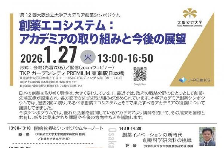 第12回大阪公立大学アカデミア創薬シンポジウム開催のお知らせ