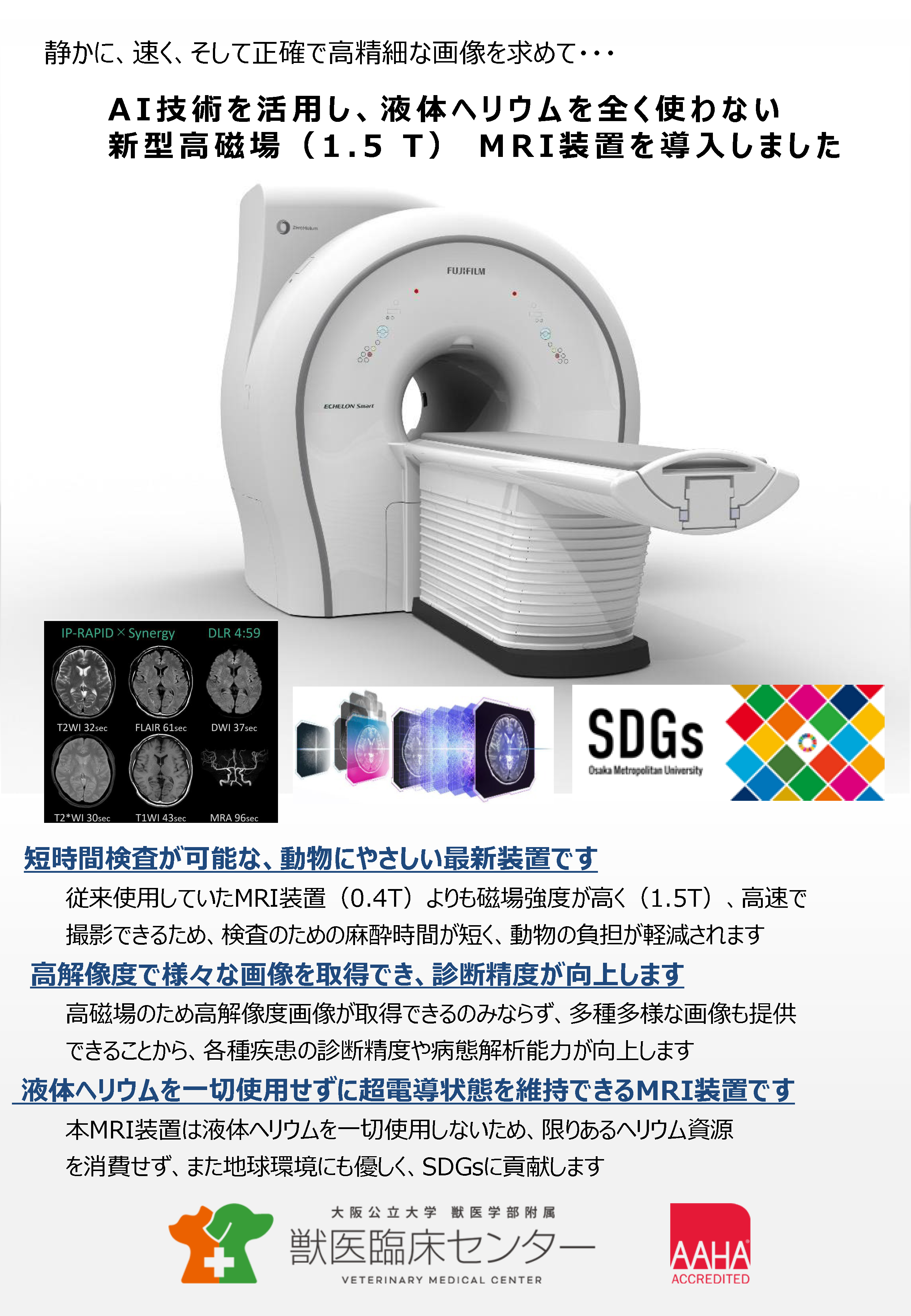 新規MRI装置の導入が完了しましたので、4月1日予約分よりMRI検査の新規予約を再開いたします。